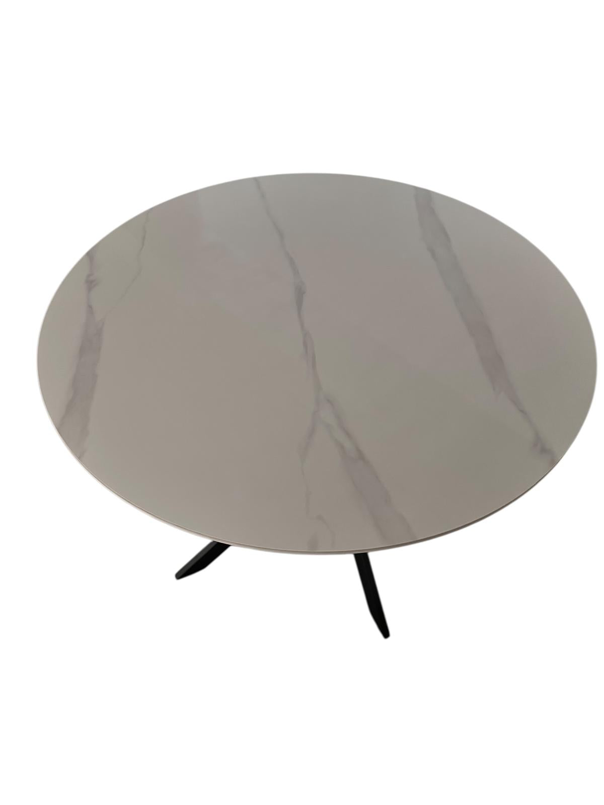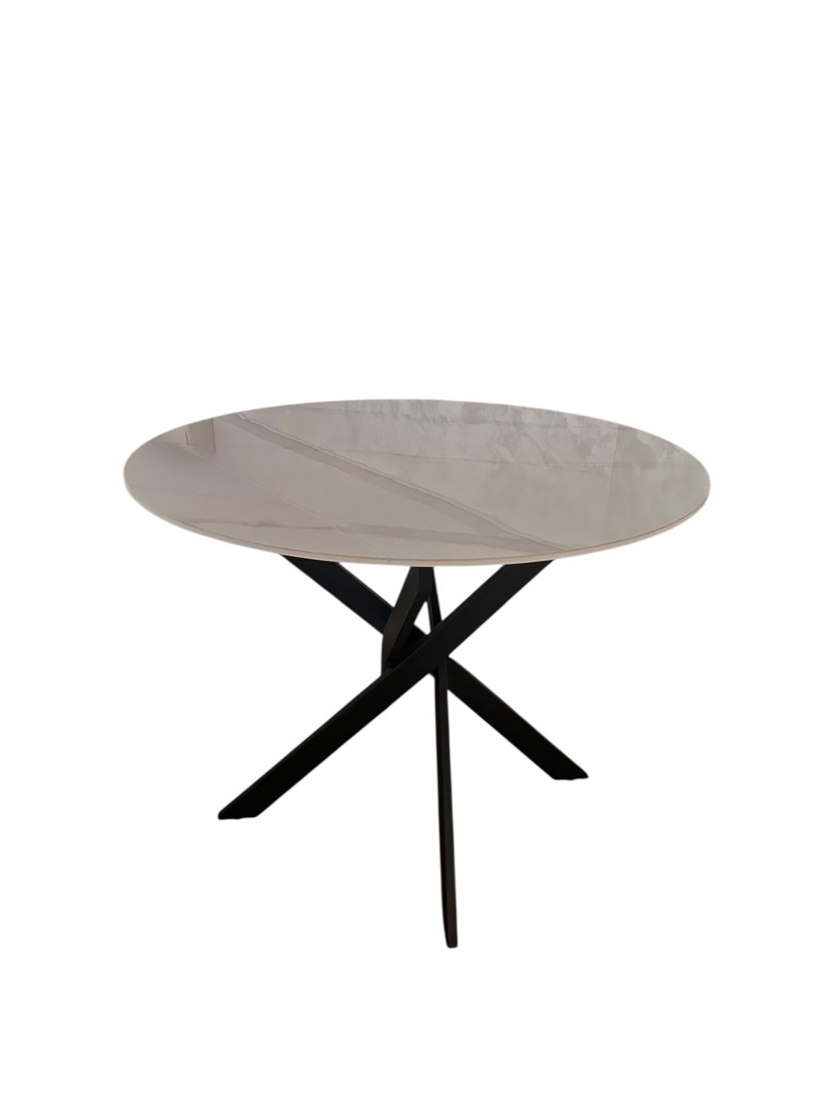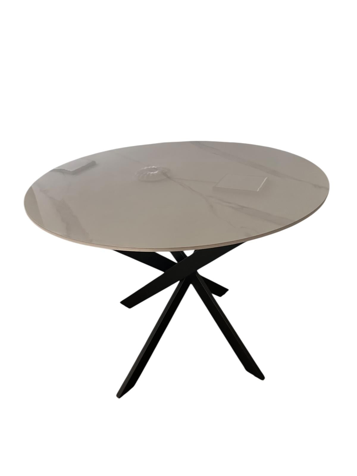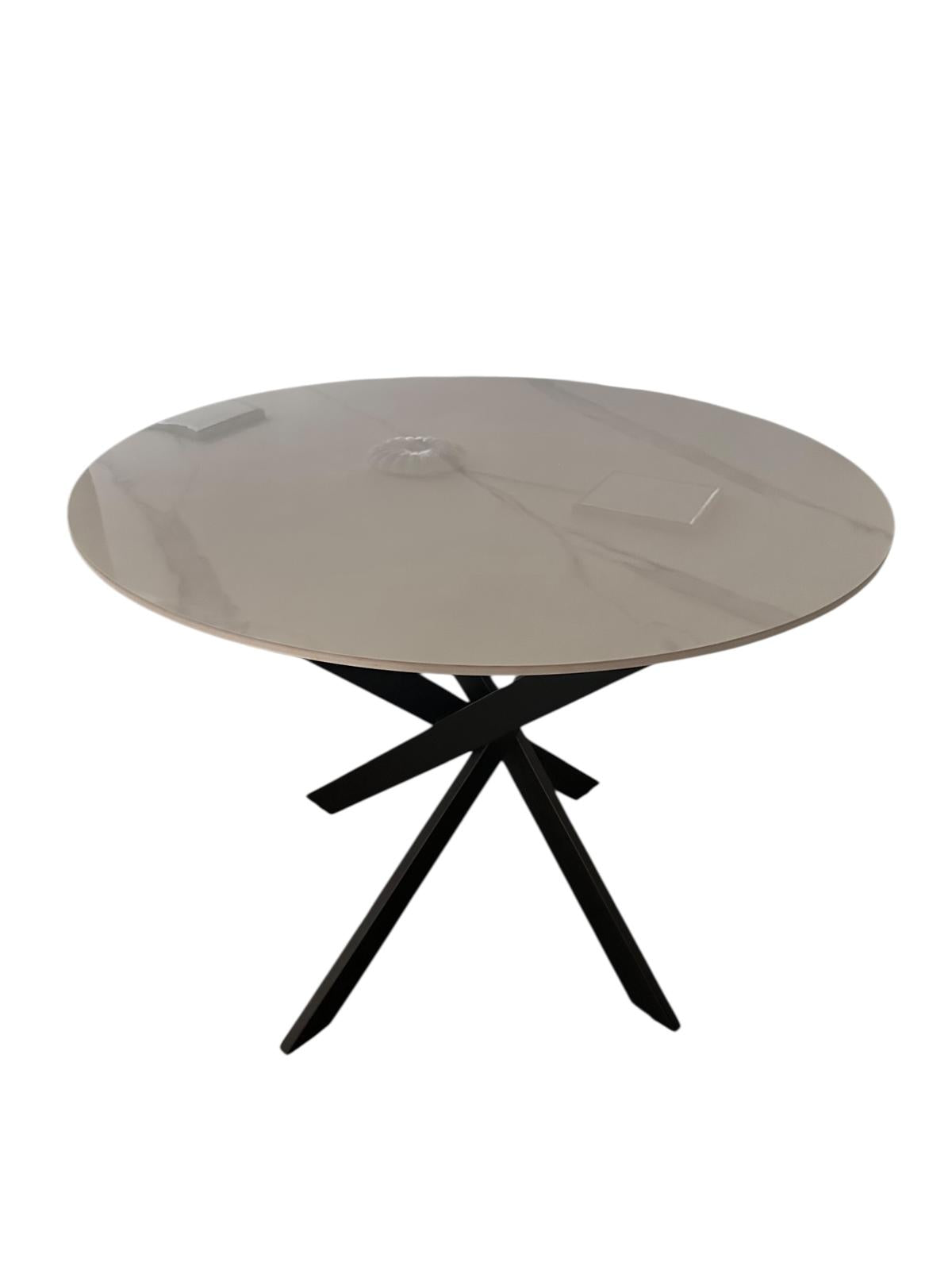 Masă rotundă din ceramică cu picioare metalice încrucișate – Eleganță modernă și durabilitate