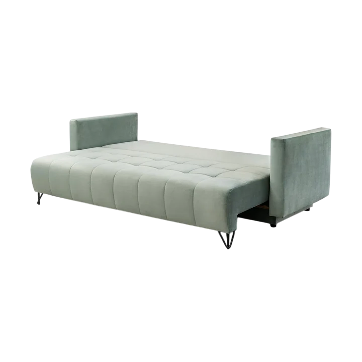 CANAPEA EXTENSIBILA ALDO, VERDE, STOFA CATIFELATA, CU SPATIU DEPOZITARE, 227X106X92 CM