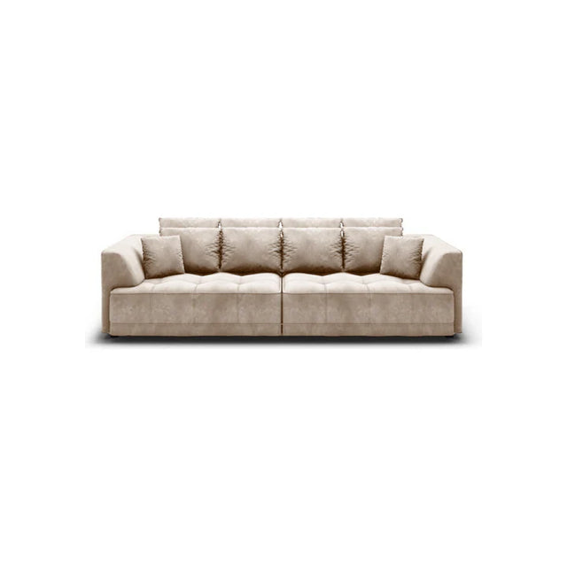 CANAPEA TIGA, BEJ, STOFA CATIFELATA, MECANISM ELECTRIC DE AJUSTARE A SCAUNULUI, SEZUT MOALE CU ARCURI SINUSOIDALE, 302X136X88/72X44 CM