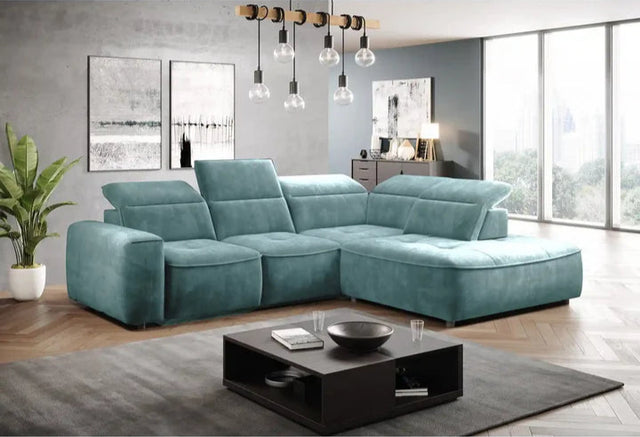 COLTAR COLOMBO L, SEZLONG DREAPTA, STOFA CATIFELATA ROSU BORDO - CROWN 06, CU ADANCIMEA SCAUNULUI REGLABILA ELECTRIC, TETIERE REGLABILE SI LADA DEPOZITARE, 296X227X103 CM