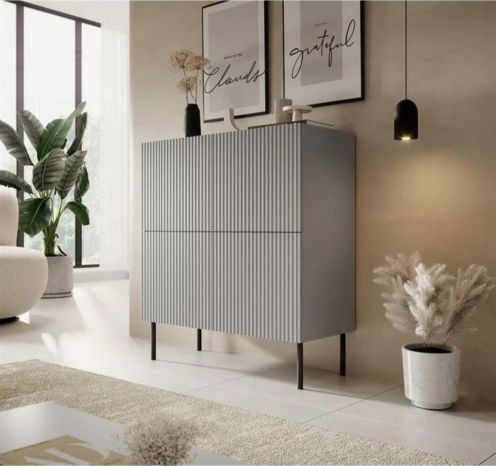 COMODA ASENSIO, GRI MAT/NEGRU, PAL/MDF LAMINAT, 100X42X110 CM