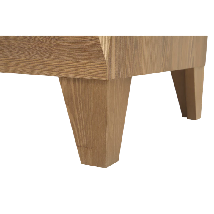 Picioarele ridicate, teșite și mânerele metalice adaugă un caracter compact si elegant.