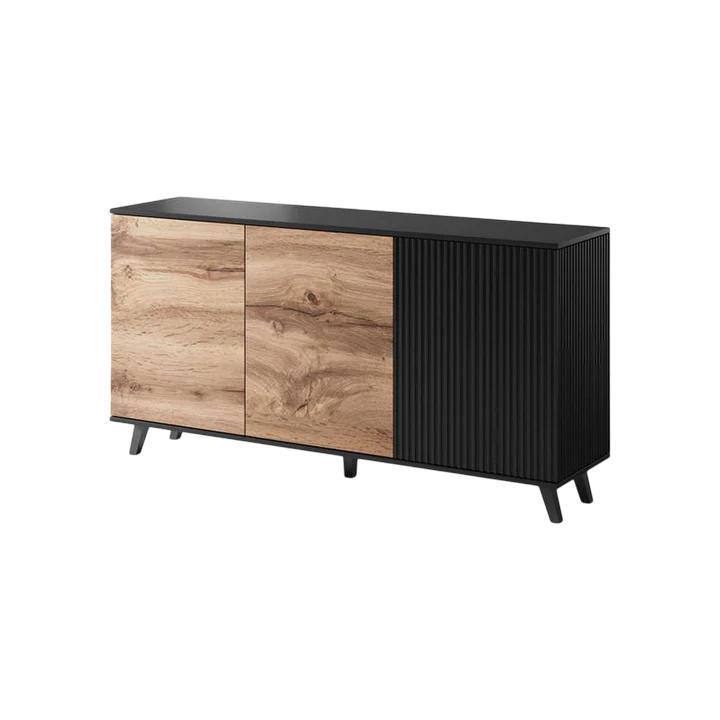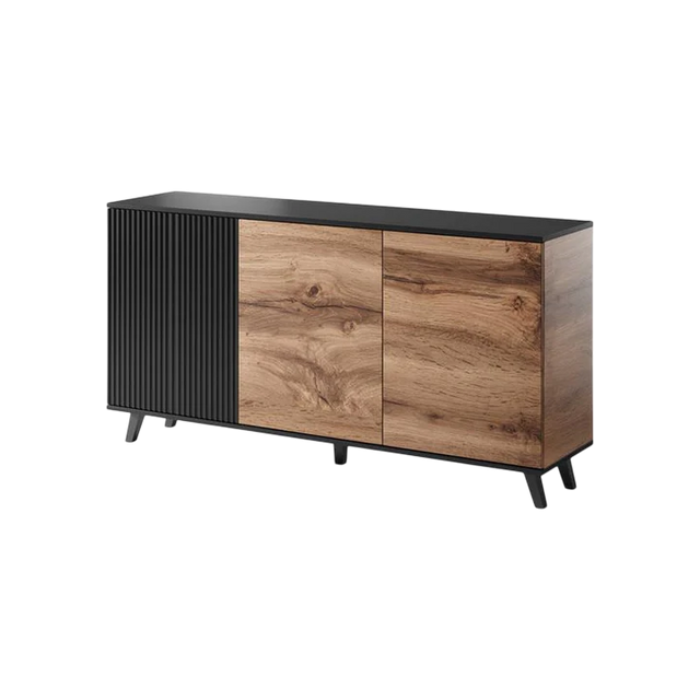 COMODA RANDOM KM-1, STEJAR WOTAN/NEGRU, PAL/MDF FURNIRUIT, 160X40X82 CM