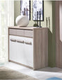 COMODA ROMA 12, CU USI SI 3 SERTARE 135X43X104, PAL LAMINAT, FRONTURI MDF, CULOARE STEJAR FERRARA/ALB LUCIOS/GRI MAT