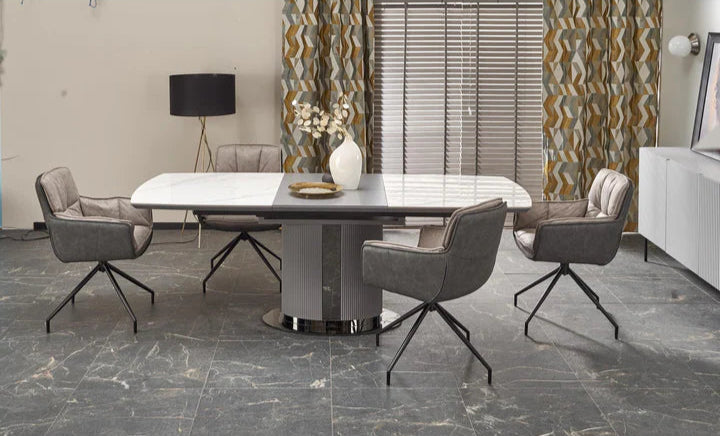 MASA EXTENSIBILA DANCAN, ALB/GRI, CERAMICA/MDF/OTEL, 160-220X90X76 CM