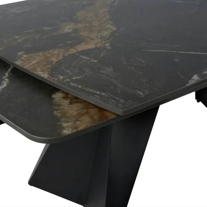 MASA EXTENSIBILA ECLIPSE, NEGRU CU EFECT DE MARMURA, CERAMICA/METAL, 165/240X90X76 CM