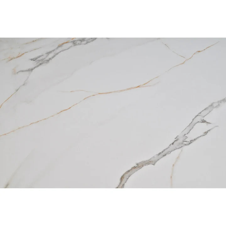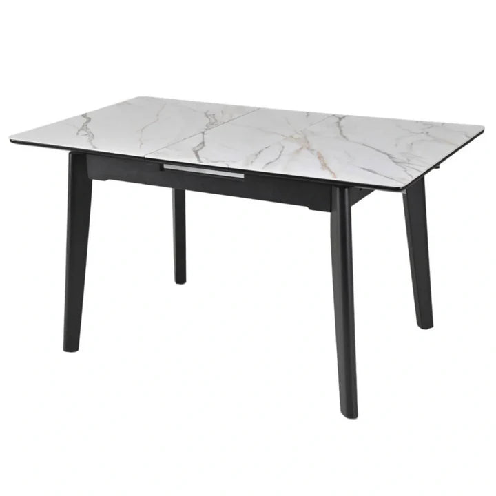 MASA EXTENSIBILA OSTEN, ALB CU EFECT DE MARMURA/NEGRU, 120/160X80X76 CM