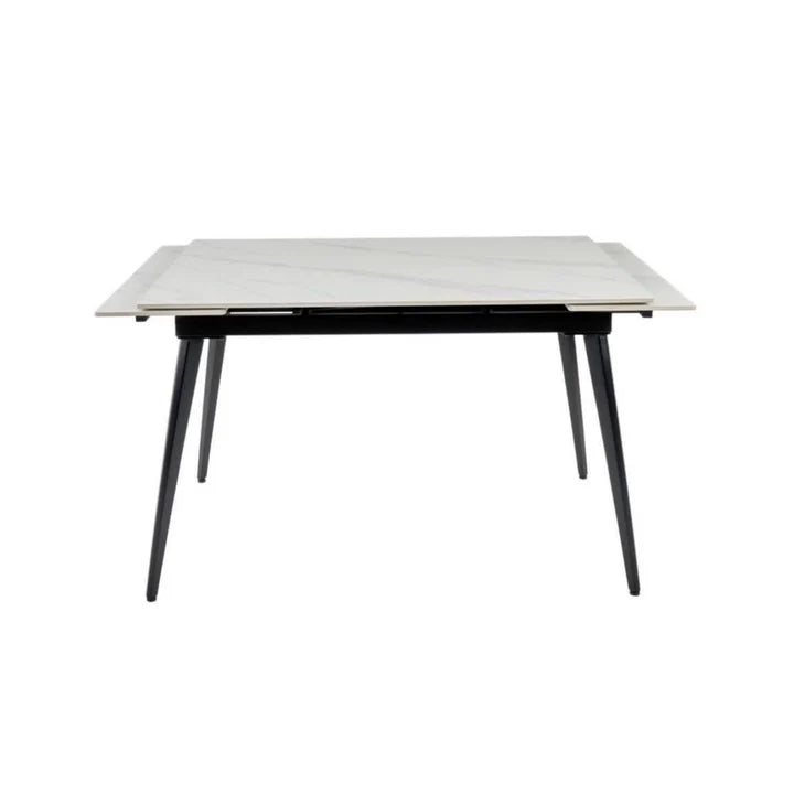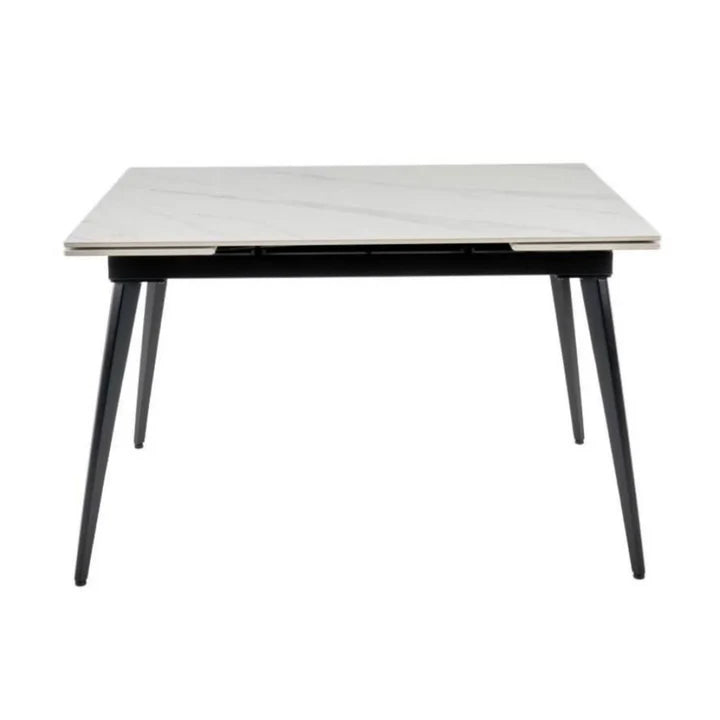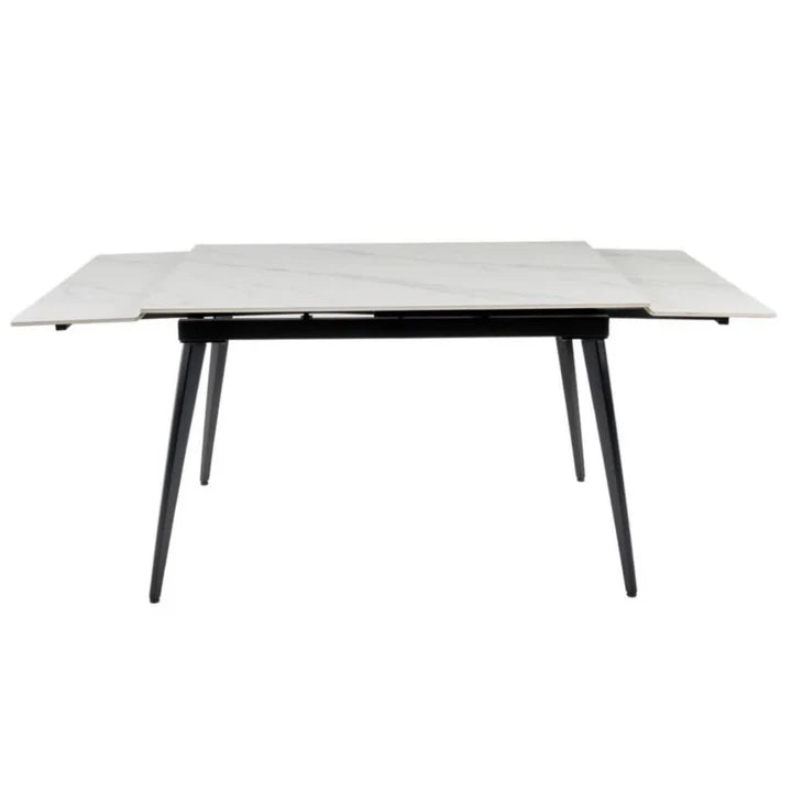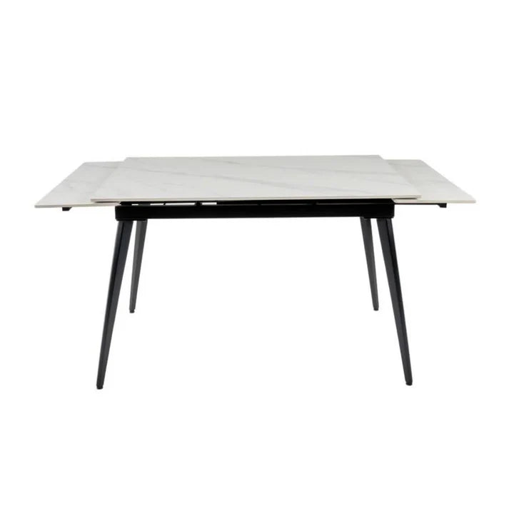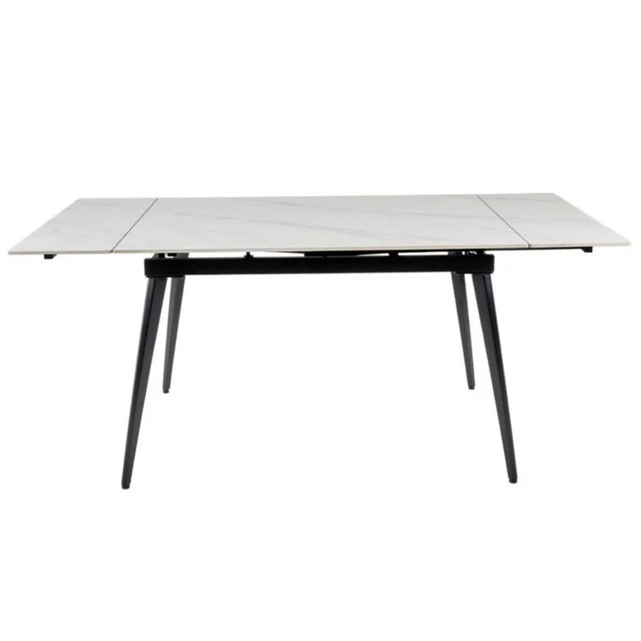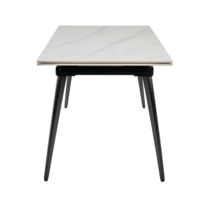 MASA EXTENSIBILA REEF, ALB CU EFECT DE MARMURA/NEGRU, CERAMICA/METAL, 120/180X80X76 CM