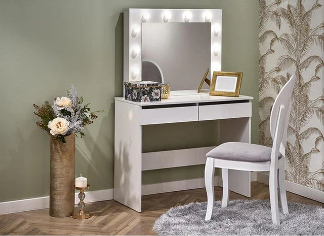 MASA DE TOALETA CU OGLINDA SI ILUMINARE LED HOLLYWOOD, ALBA, 2 SERTARE, 94X43X140 CM