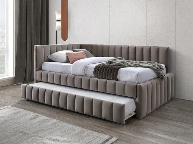PAT 120X200 ALFIE, BEJ, STOFA CATIFELATA - BLUVEL 40/LEMN, 133X216X95 CM