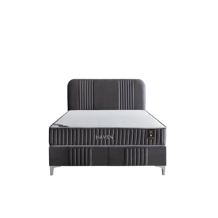 PAT HAVEN 160X200, STOFA CATIFELATA GRI - NIL 18, CU SOMIERA SI SPATIU DEPOZITARE