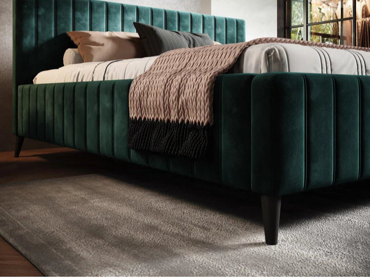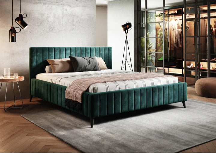 PAT TAPITAT MAGGIE SR CU SOMIERA METALICA SI SISTEM DE REGLARE, STOFA CATIFELATA VERDE - MONOLITH 37, 222X178X106 CM LXlXH, SUPRAFATA DE DORMIT 160X200 CM