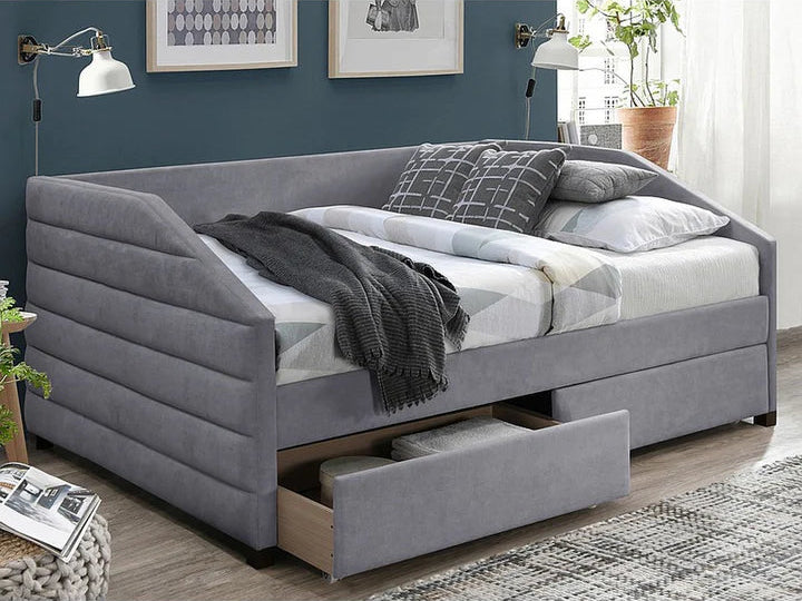 PAT NADIA, STOFA CATIFELATA GRI, CU SOMIERA INCLUSA SI SERTARE, 120X200 CM