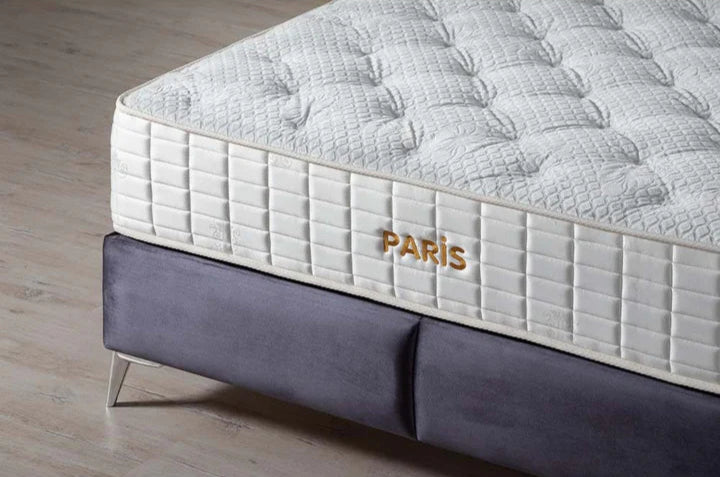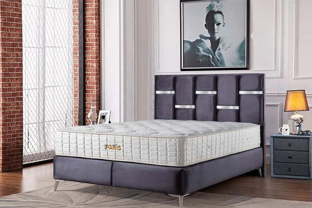 PAT PARIS 160X200, STOFA CATIFELATA GRI - NIL 18, CU SOMIERA SI SPATIU DEPOZITARE