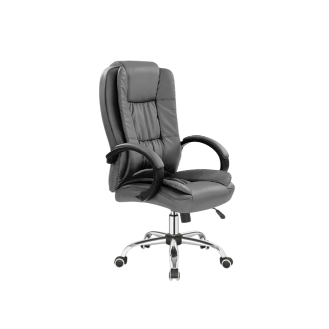 SCAUN ERGONOMIC INALT GRI RELAX, TAPITAT CU PIELE ECOLOGICA, STRUCTURA DIN METAL, INALTIME REGLABILA, MECANISM TILT, 75X64X110/118 CM LXAXH1/H2