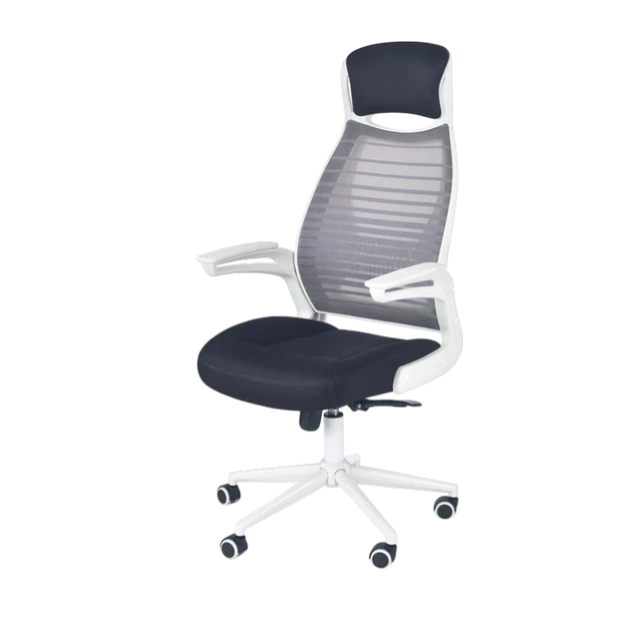 SCAUN ERGONOMIC CU SUPORT CERVICAL FRANKLIN, TAPITAT CU STOFA MESH ALBA/NEAGRA, STRUCTURA DIN METAL SI PLASTIC, INALTIME REGLABILA, MECANISM TILT, 60X65X116/124 CM LXAXH1/H2
