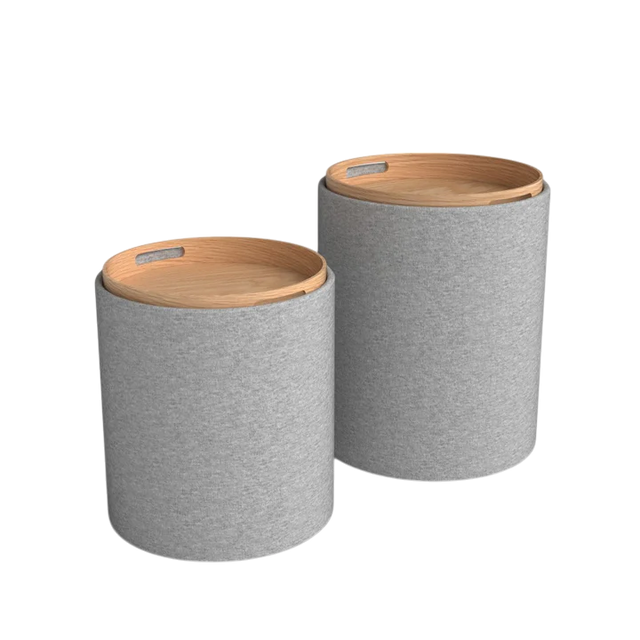 SET 2 TABURETI MULTIFUNCTIONALI GRI DESCHIS AVIKO, CU SPATIU PENTRU DEPOZITARE